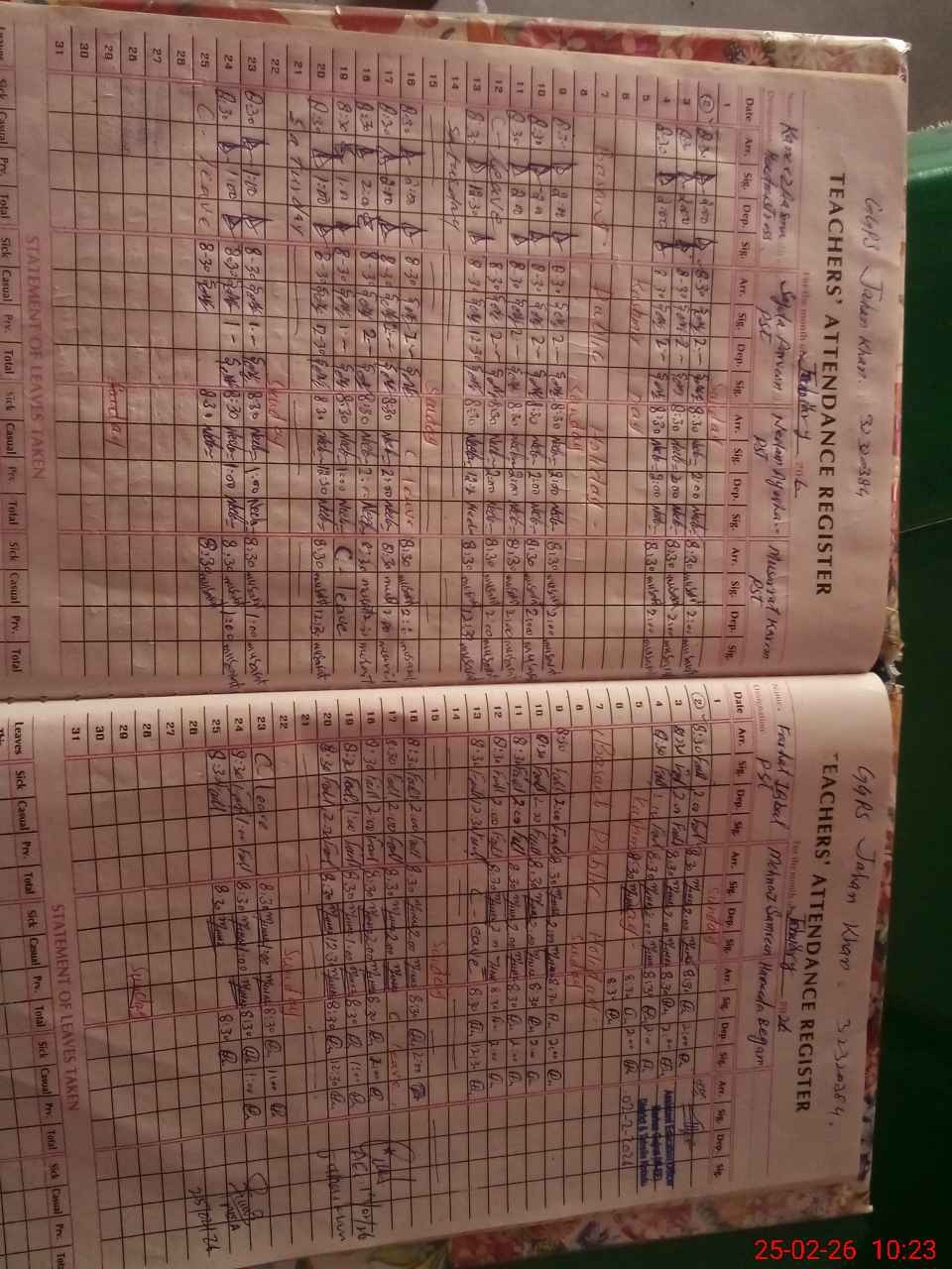 | 32**** | Ka**** Aa**** | PST Arts | Regular | 0 | 0 | 0 | 0 | 0 | 0 | 0 | 0 | 0 | Casual |