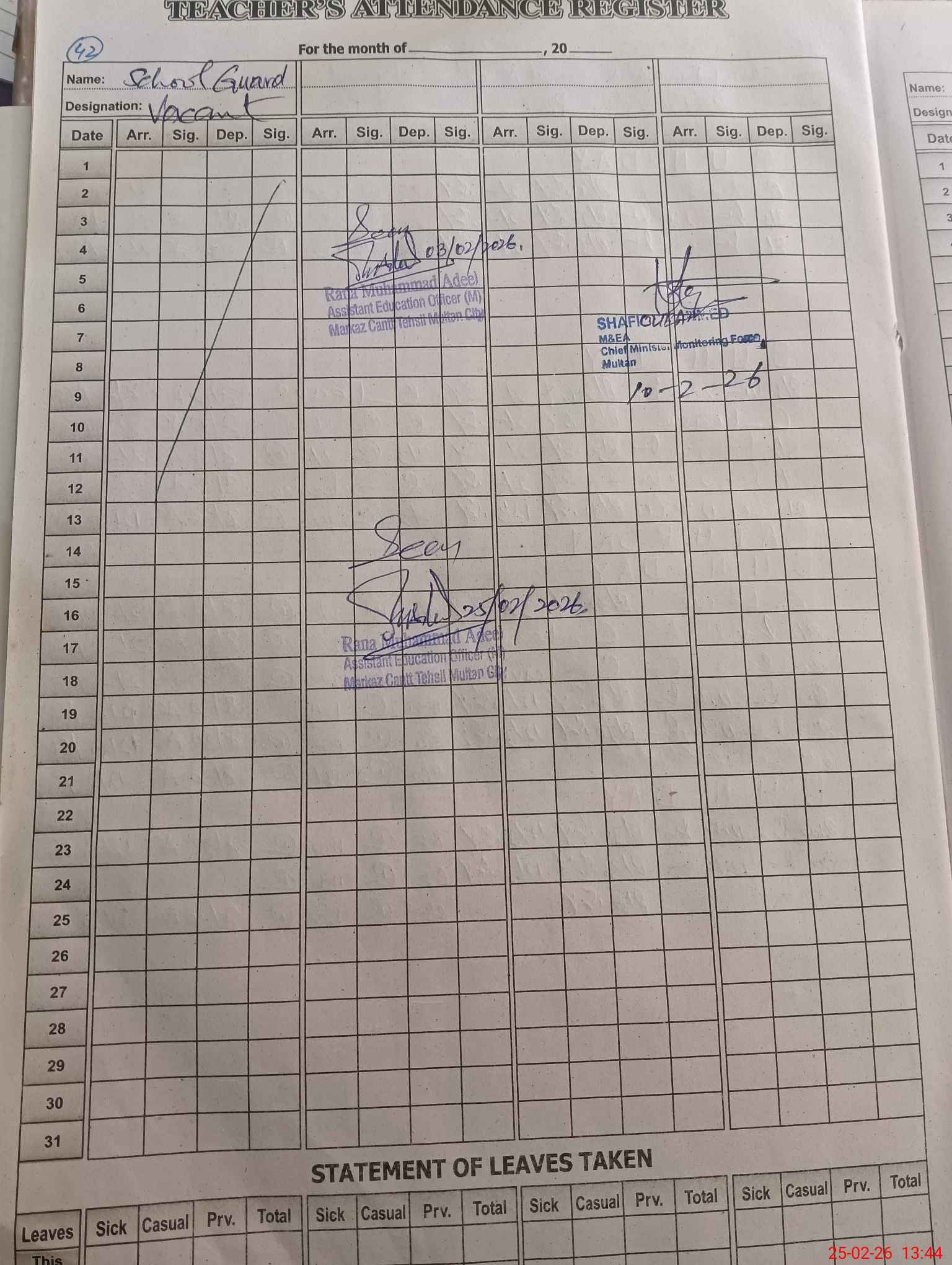 | Name: Sh**** Ha**** Kh**** Designation: (School Headmaster's/Headmistress's) HEADMASTER Phone/Cell Number: 03**** |