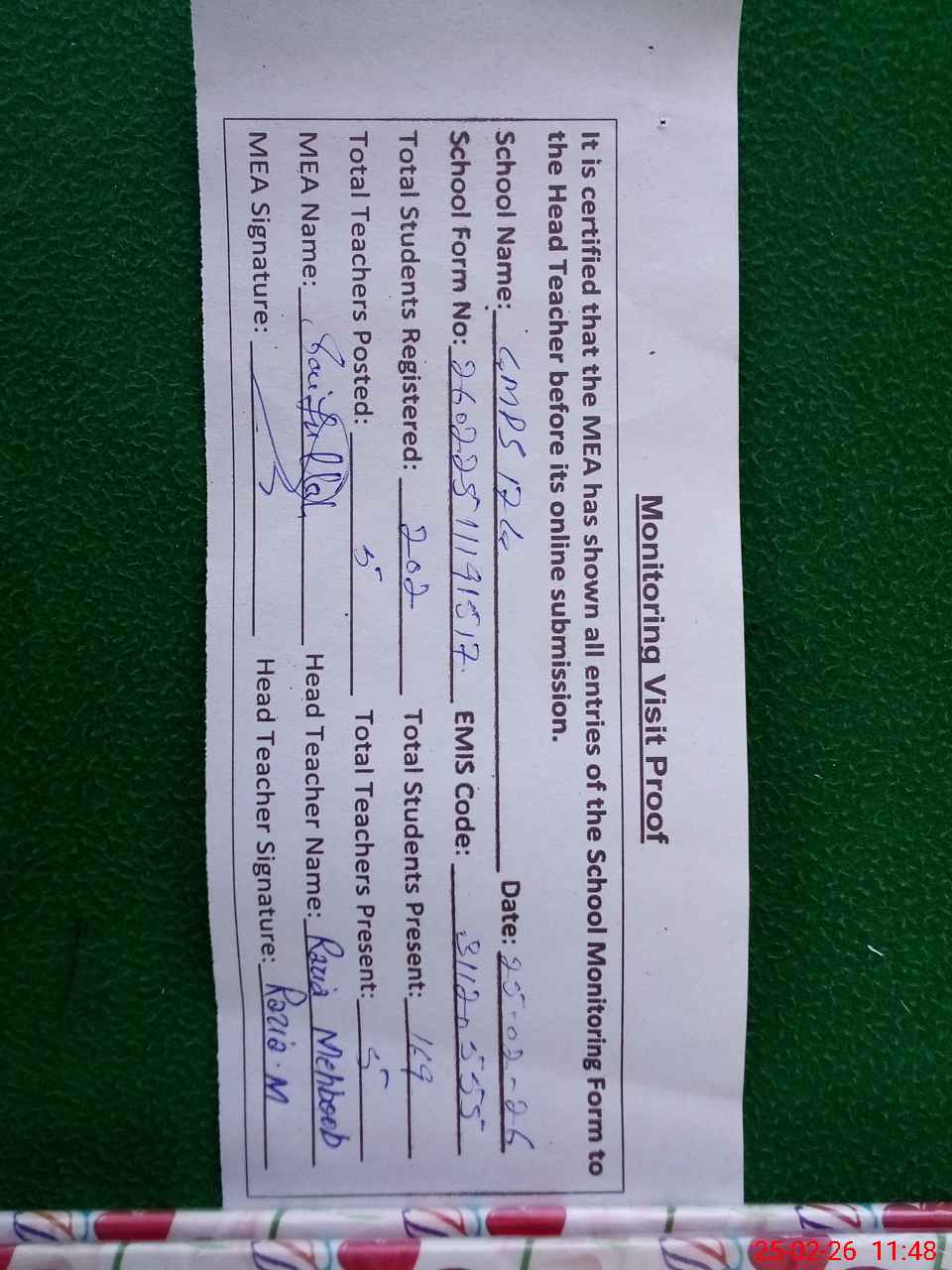 | Certified that this School was Inspected by the Undersigned MEA/DMO Today and the Information Stated Above is as Per Record. | |||||