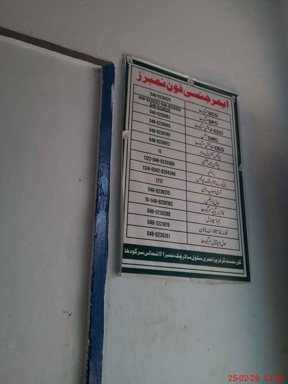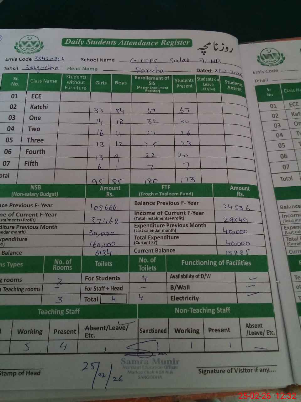 | District: SARGODHA | Tehsil: SARGODHA | Markaz: CHAK 84-NB - FEMALE | Level: Primary | |