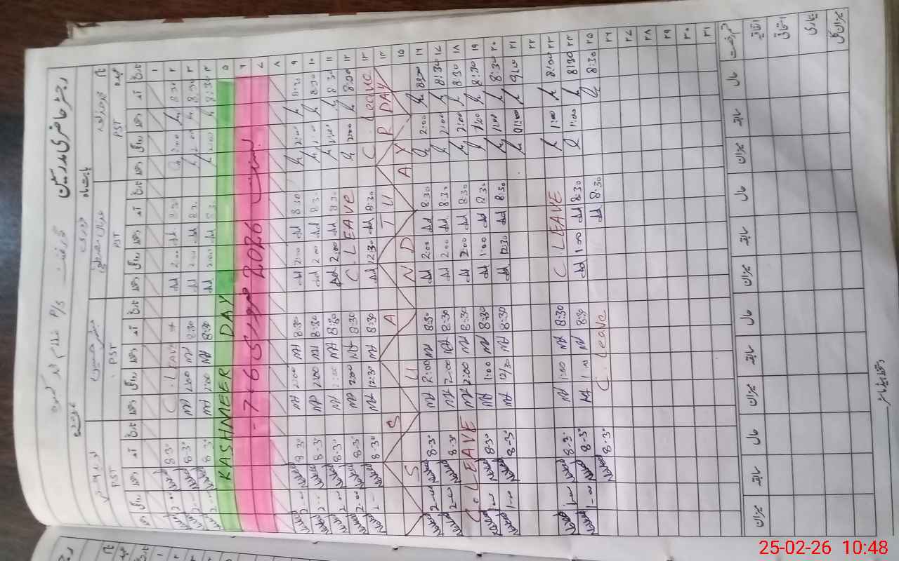 | CNIC | Full Name | Designation | R/C | Absence During Last Calender Month |