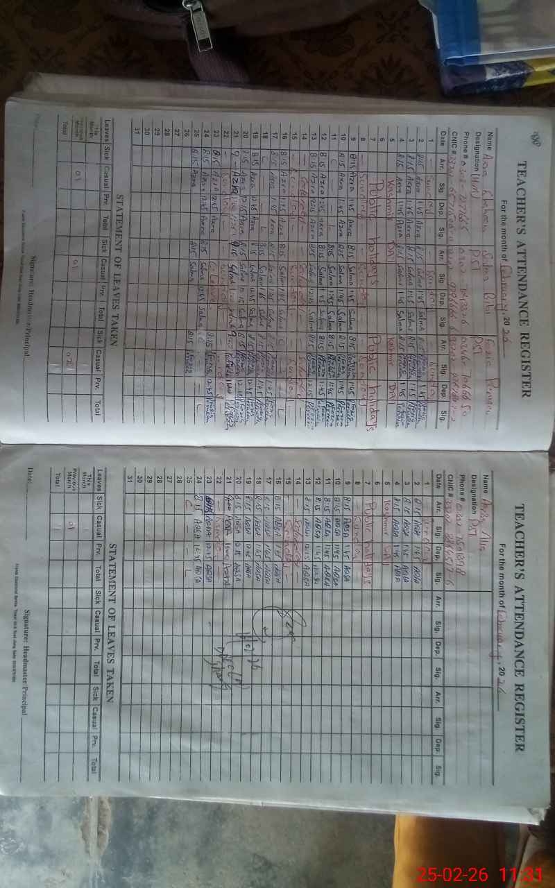 | Name: Az**** Sh**** Designation: (School Headmaster's/Headmistress's) PST Phone/Cell Number: 03**** |