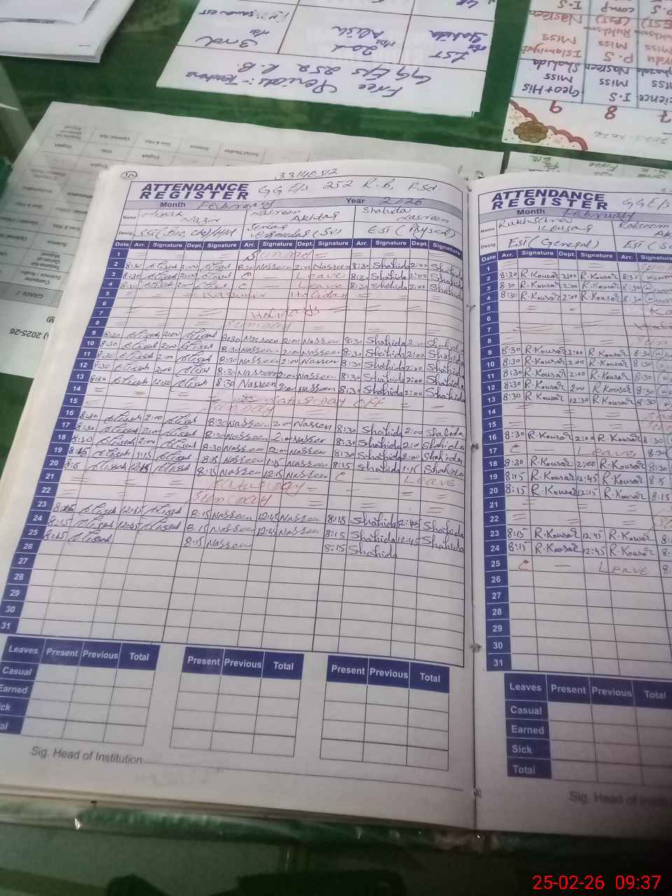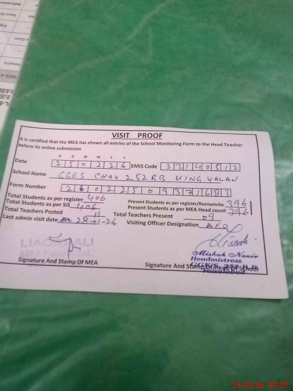 | Attendance Register | Head Teacher | MEA with School | Visit Proof |