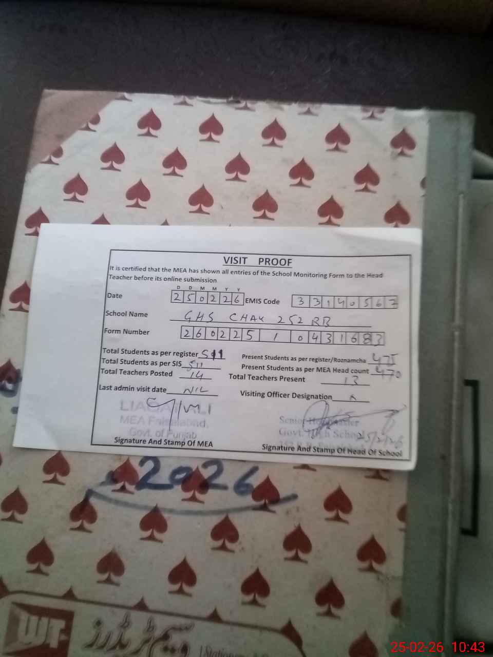 | Certified that this School was Inspected by the Undersigned MEA/DMO Today and the Information Stated Above is as Per Record. | |||||