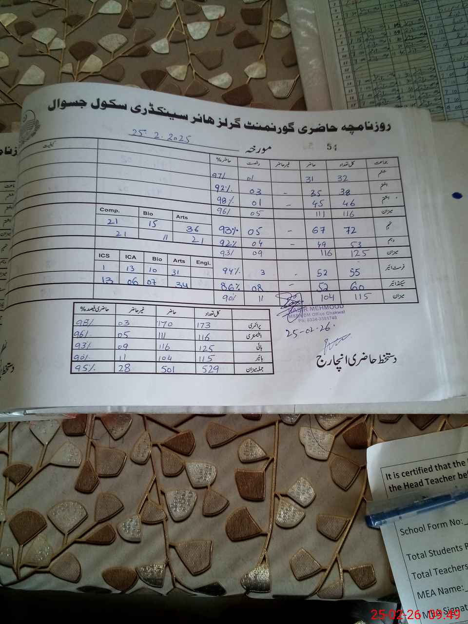 | Certified that this School was Inspected by the Undersigned MEA/DMO Today and the Information Stated Above is as Per Record. | |||||
