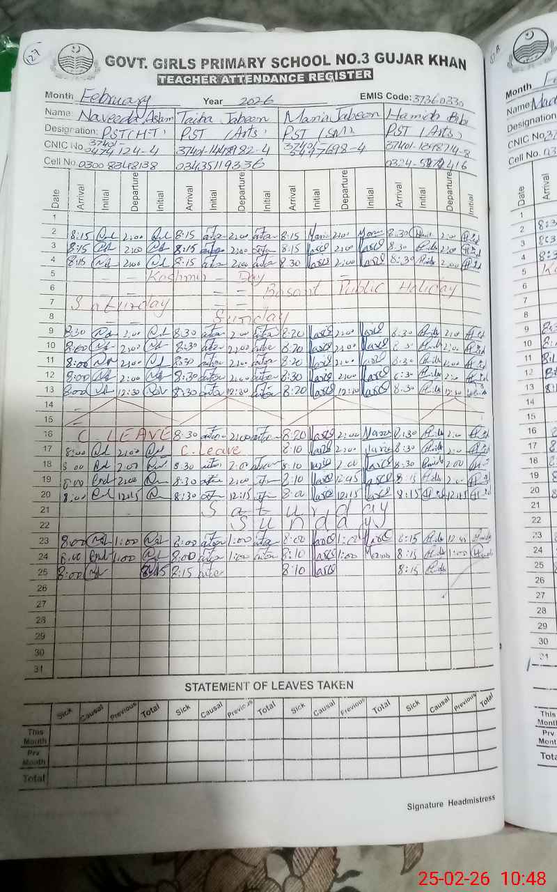 | Name: NA**** AS**** Designation: (School Headmaster's/Headmistress's) PST Phone/Cell Number: 03**** |