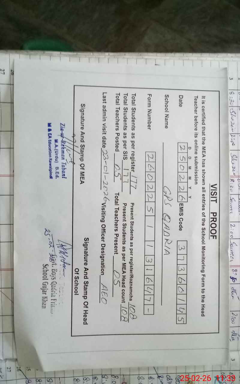 | EMIS Code: 37360145 | Name of School: GPS QADRIA | |||