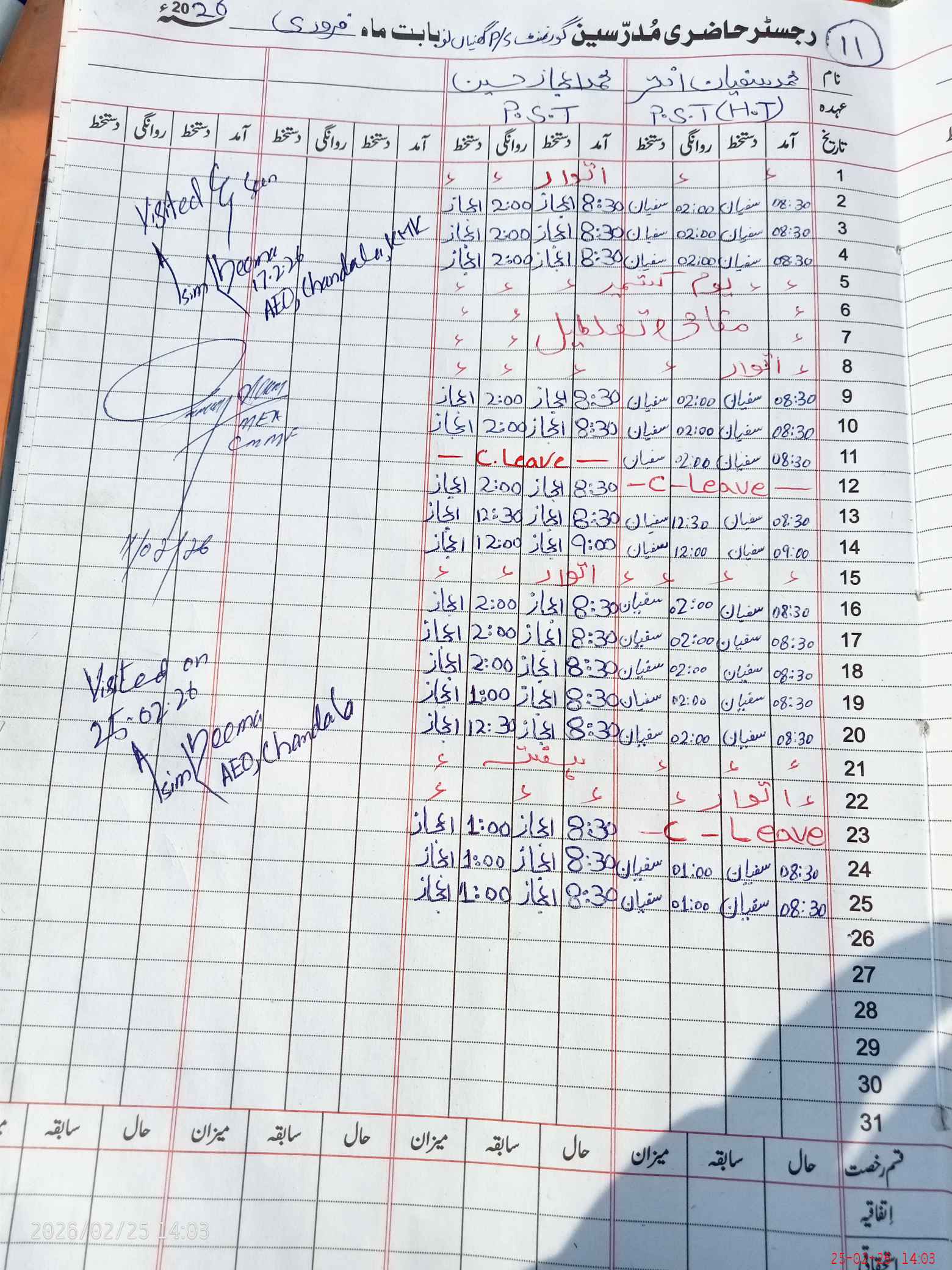 | Attendance Register | Head Teacher | MEA with School | Visit Proof |