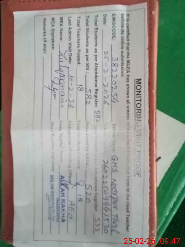 | EMIS Code: 38220254 | Name of School: GHS NOORPUR THAL | |||