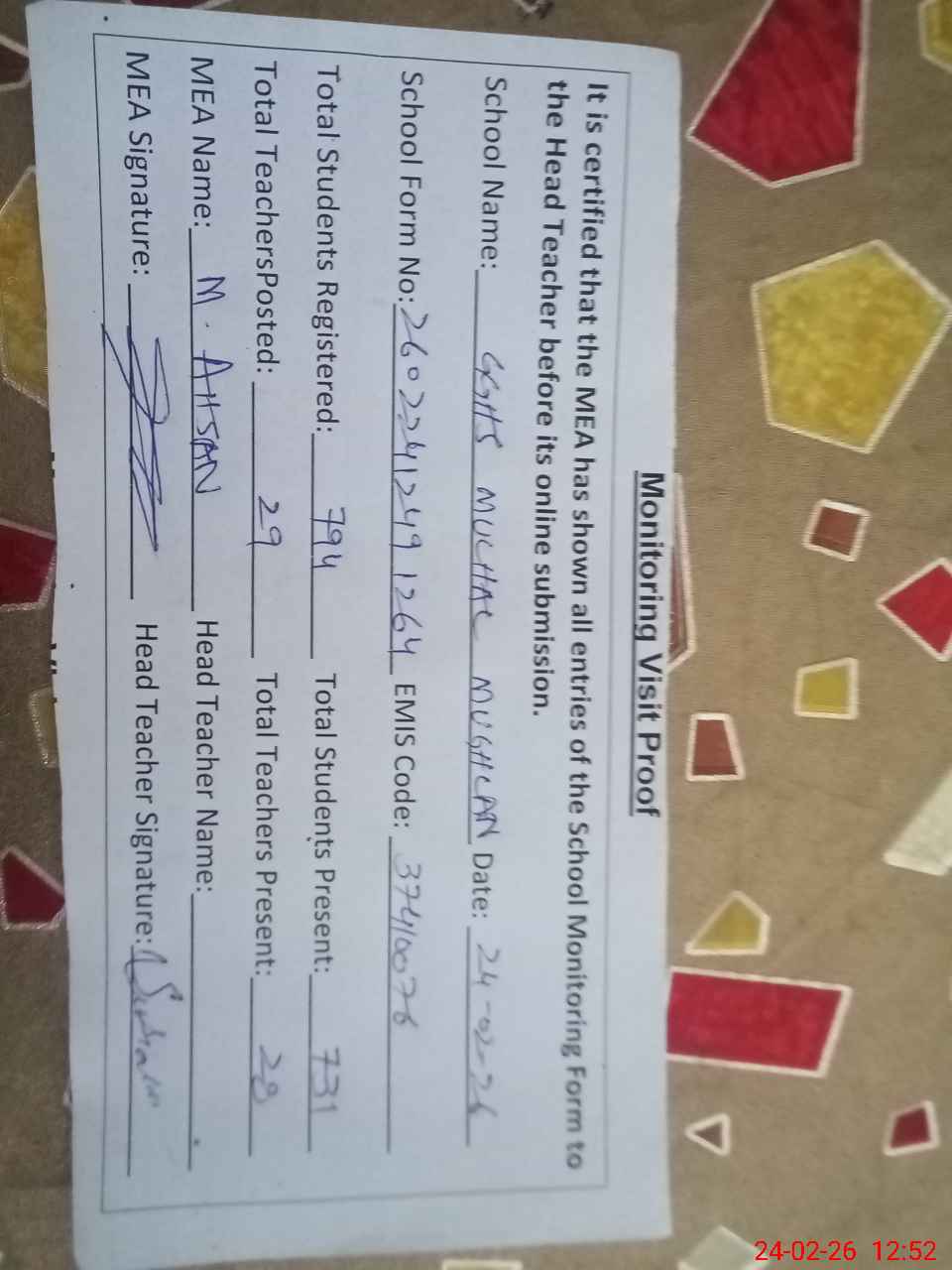 | EMIS Code: 37410076 | Name of School: GGHS MULHAL MUGHLAN | |||