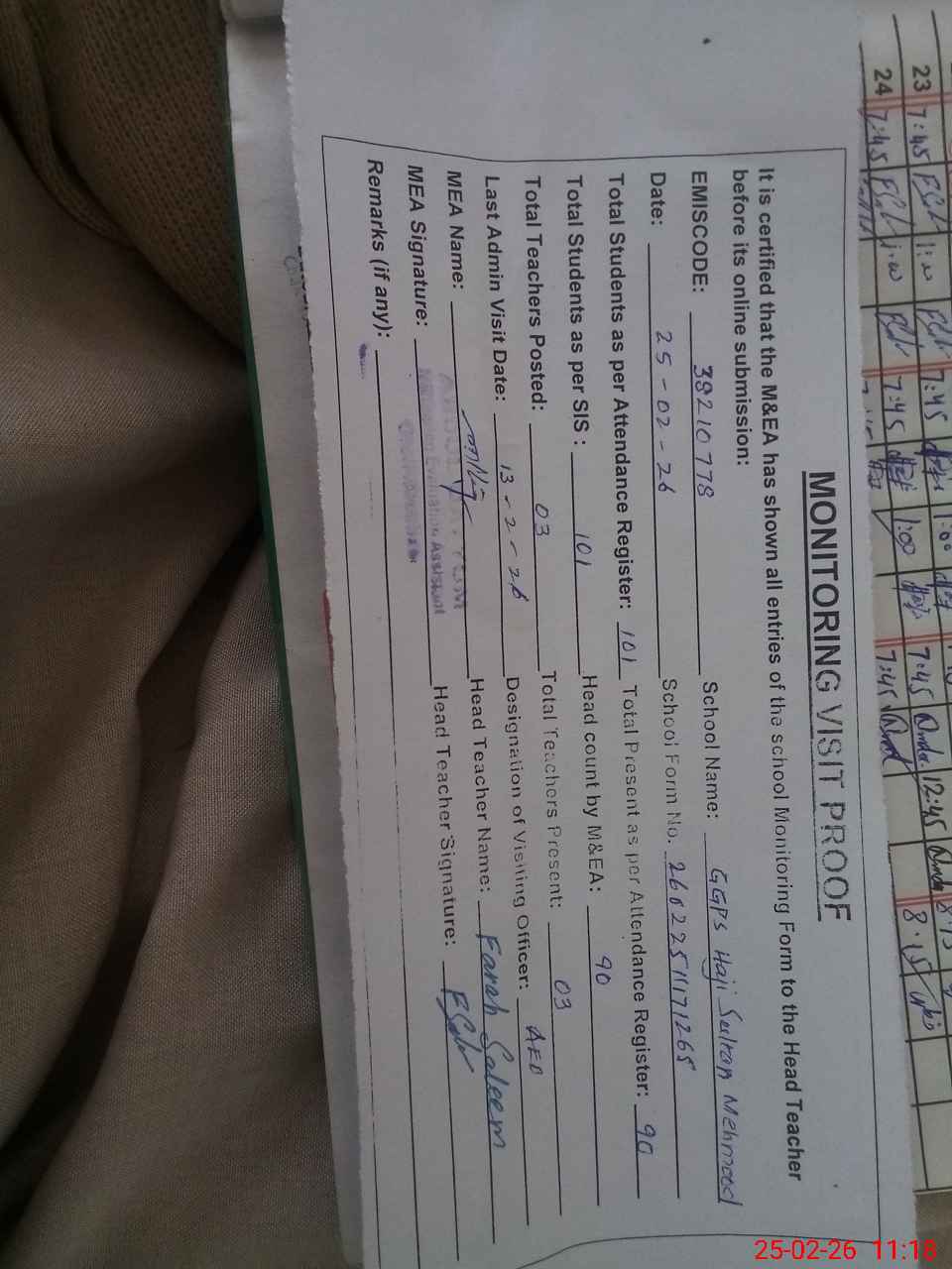 | EMIS Code: 38210778 | Name of School: GGPS HAJI SULTAN MEHMOOD PALUWAN | |||