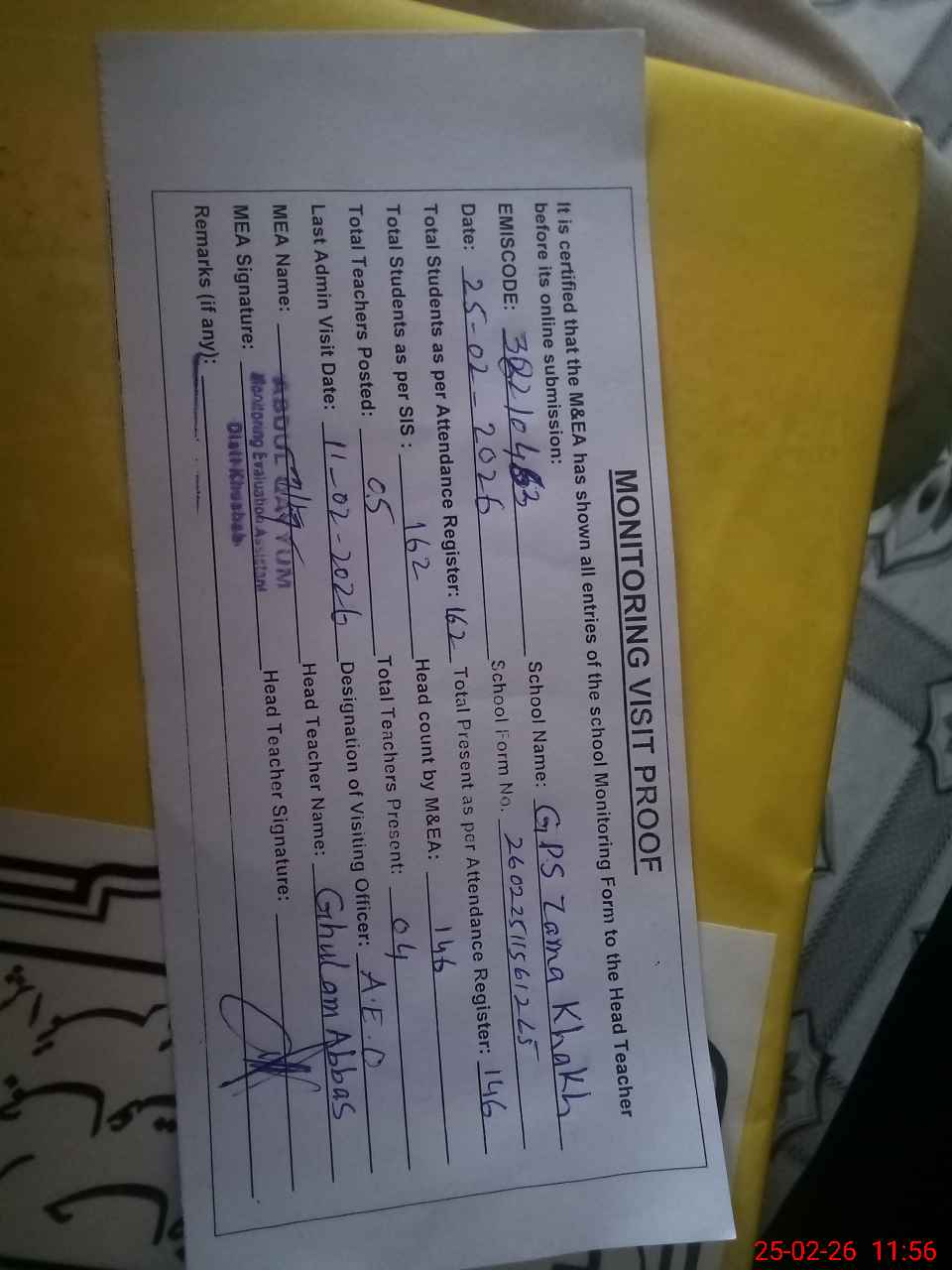 | EMIS Code: 38210463 | Name of School: GPS ZAMA KHAKH | |||