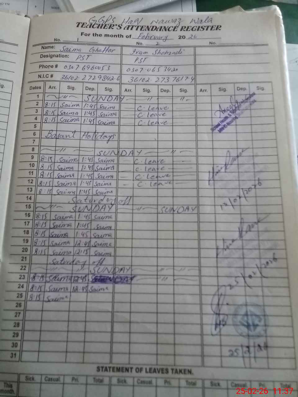 | Name: Sa**** Ga**** Designation: (School Headmaster's/Headmistress's) PST Phone/Cell Number: 03**** |