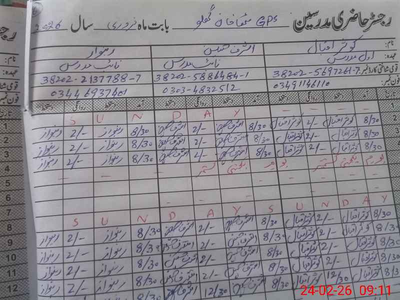 | Name: Ka**** Iq**** Designation: (School Headmaster's/Headmistress's) PST Phone/Cell Number: 03**** |