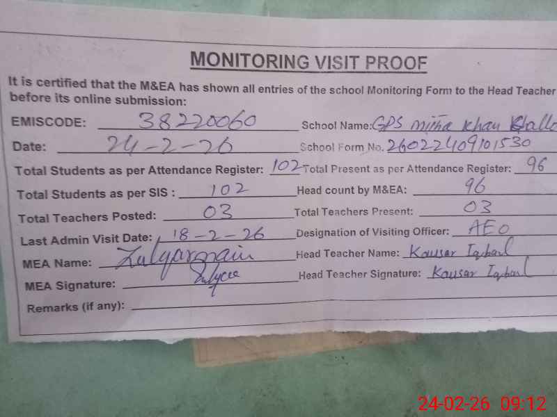 | EMIS Code: 38220060 | Name of School: GPS MITHA KHAN GHALL | |||