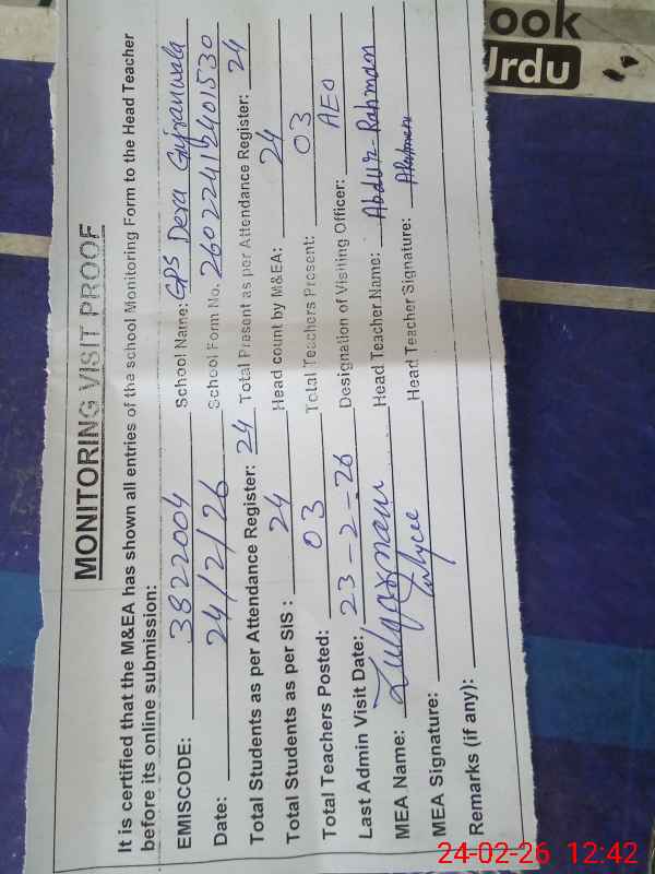 | EMIS Code: 38220040 | Name of School: GPS DERA GUJRAN WALA | |||