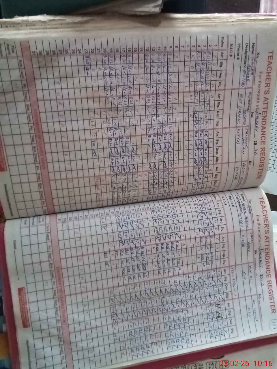 | Total no. of Classrooms: 8 No. of Classrooms Used for Teaching: 6 No. of Classrooms Storing Old Furniture, FTBs, etc: 0Comments if Any: Sir . PST Teacher Arshed on official duty by letter but on teacher attendance register not mention leave or duty etc. In this school 2x teacher from Moawan Foundation |