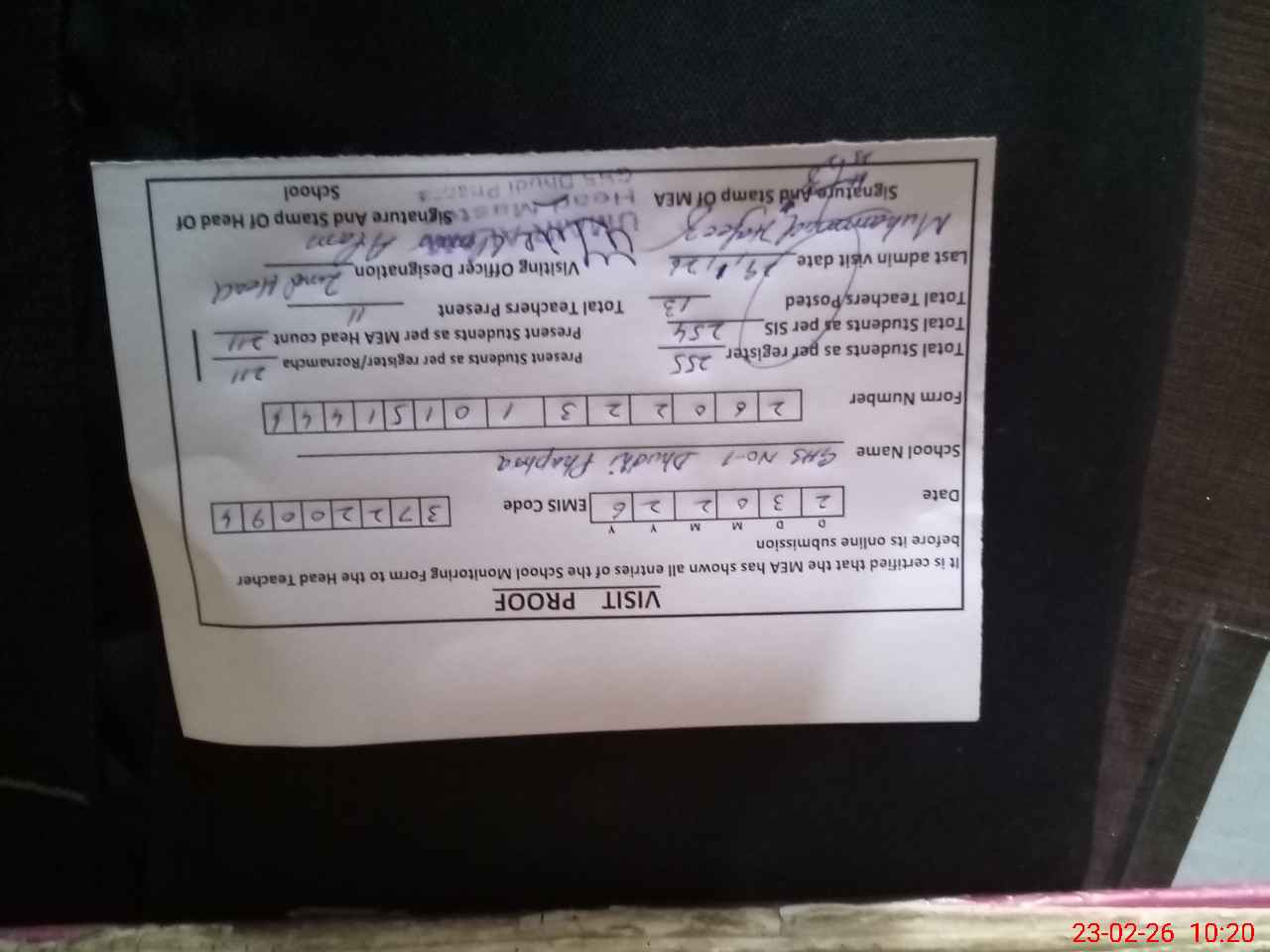 | EMIS Code: 37220094 | Name of School: GHS NO.1 DHUDHI PHAPHRA | |||