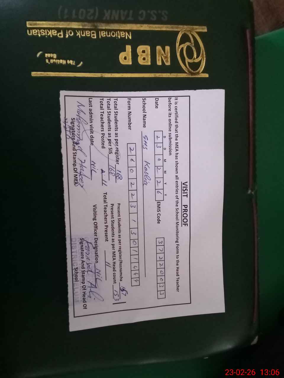 | EMIS Code: 37220033 | Name of School: GHS KASLIAN P.D. KHAN | |||