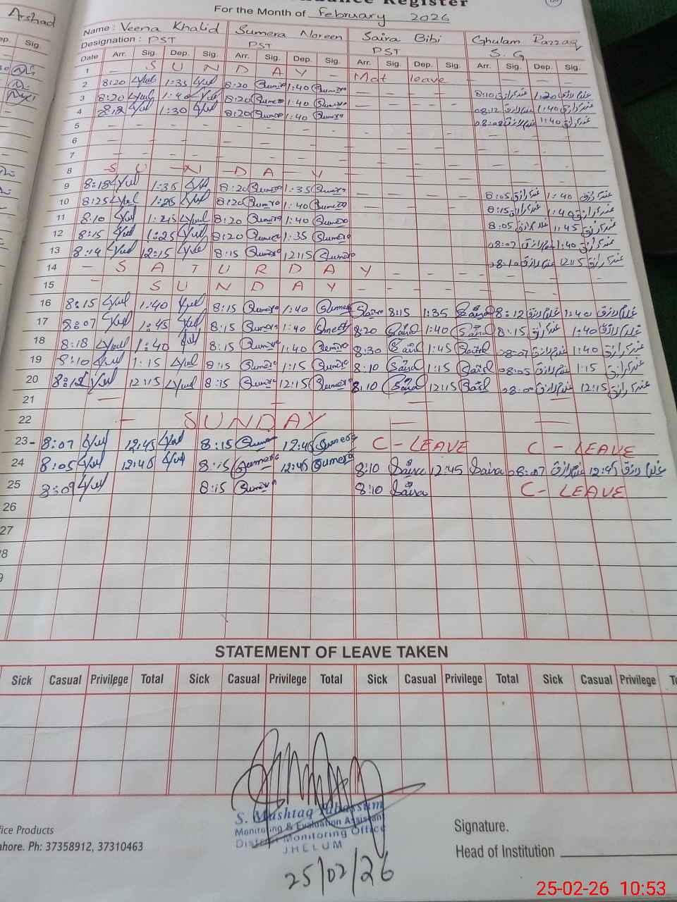 | 37**** | Sa**** BiBi | Temporary | 31 | 0 | 0 | 31 | 0 | 0 | 0 | 0 | 0 | Present | |