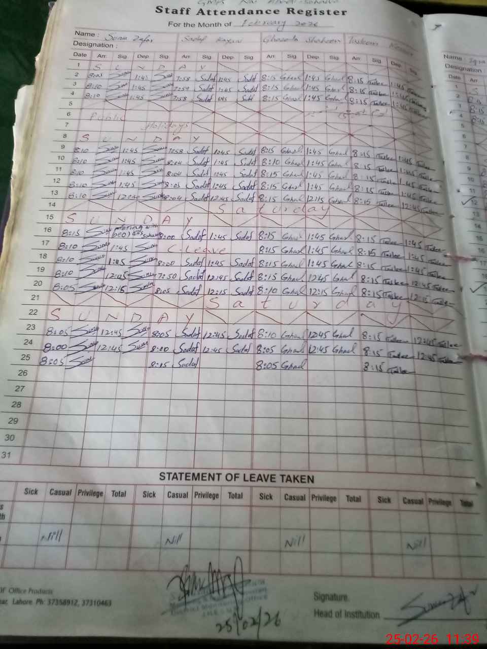 | Name: Su**** Za**** Designation: (School Headmaster's/Headmistress's) PST Phone/Cell Number: 03**** |