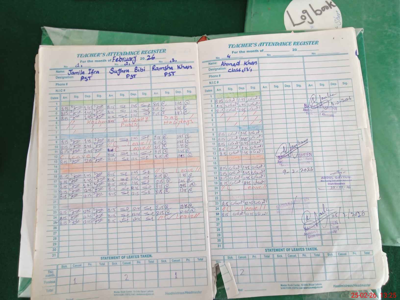 | Leave | Duty | Absent | Maternity | Medical | Ex- Pak |
