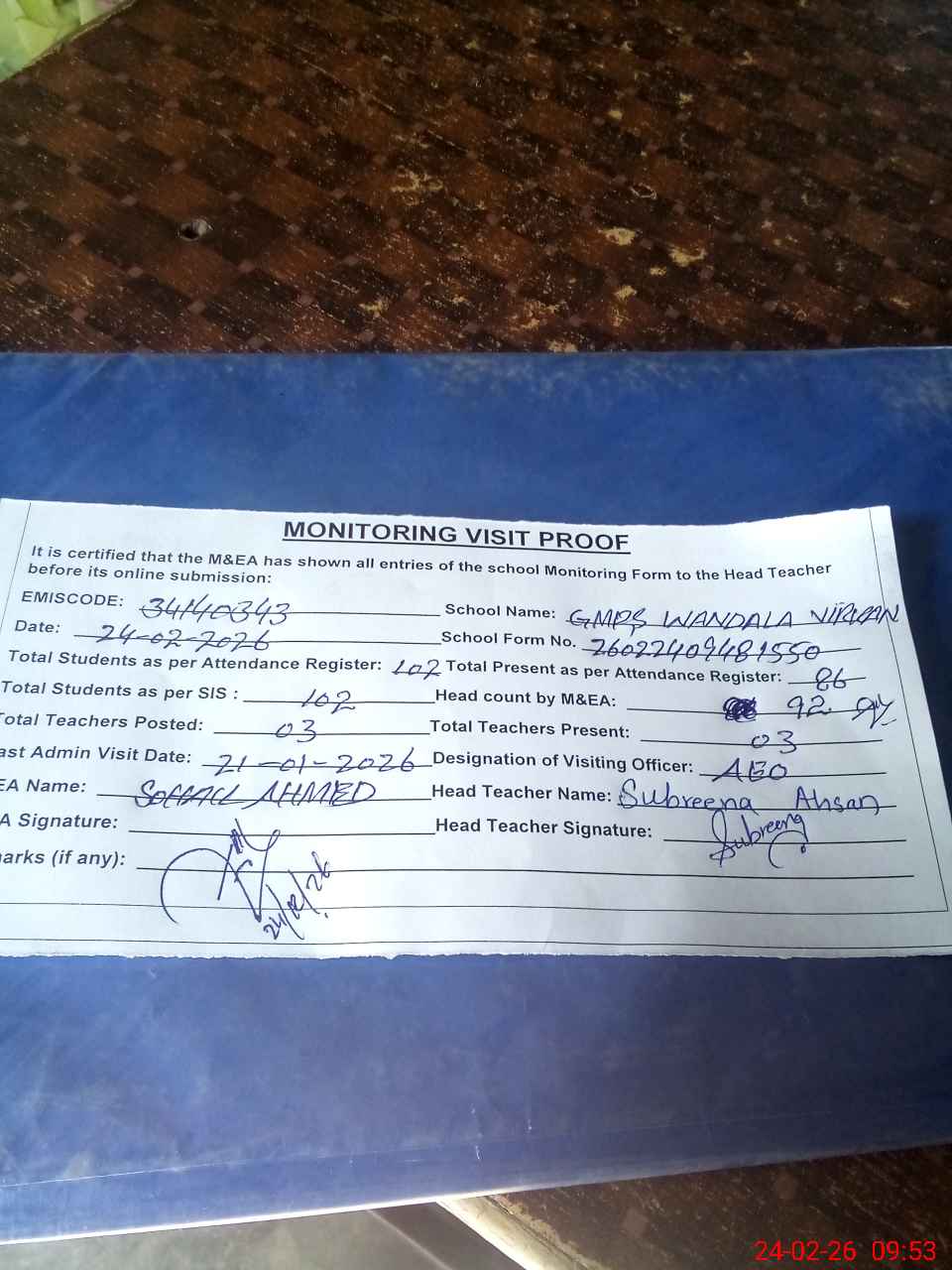 | EMIS Code: 34140343 | Name of School: GMPS WANDALA VIRKAN | |||
