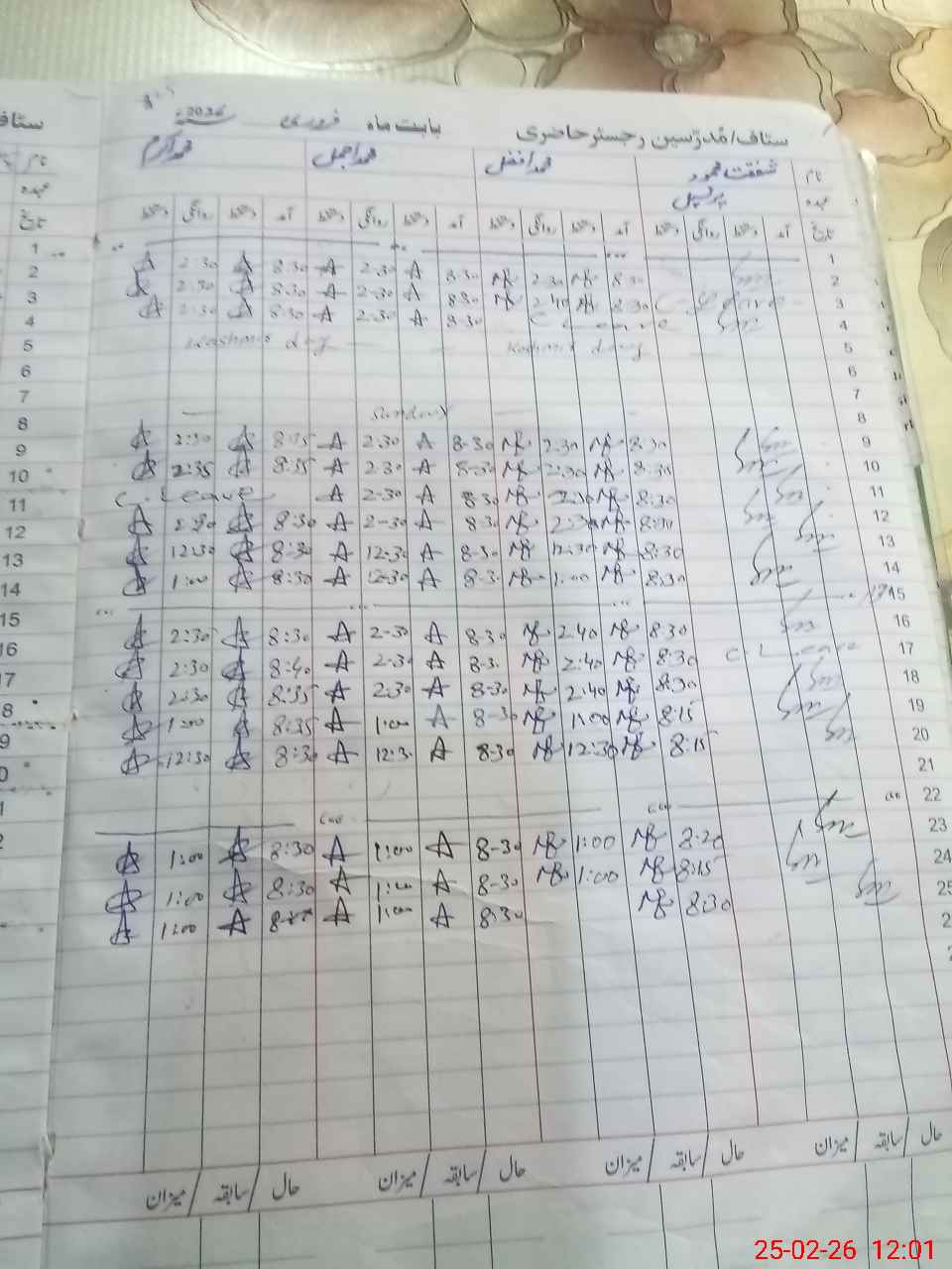 | CNIC | Full Name | Designation | R/C | Absence During Last Calender Month |