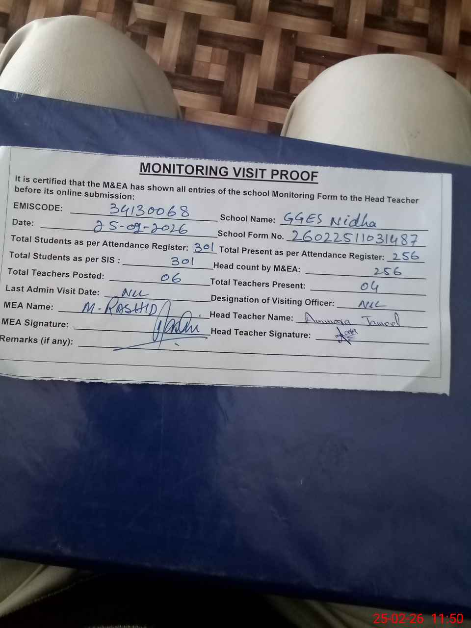| EMIS Code: 34130068 | Name of School: GGES NIDAH | |||