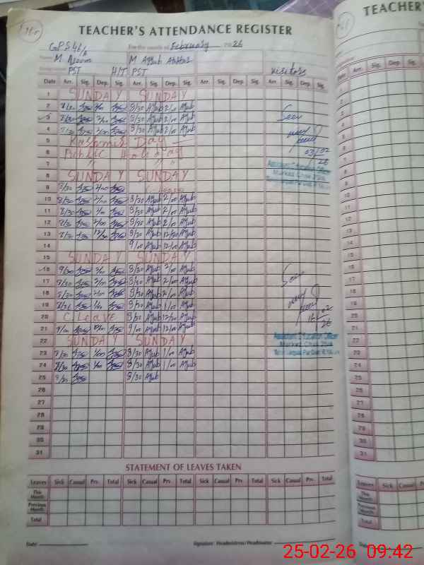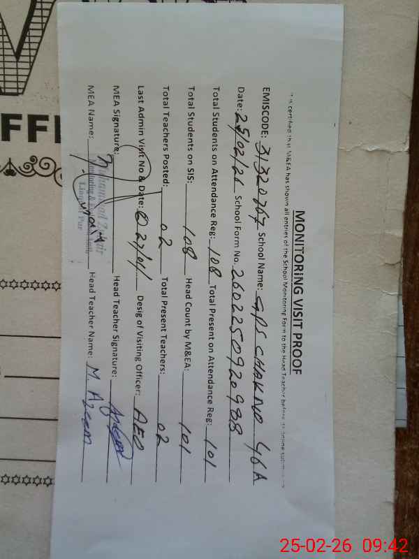 | Attendance Register | Head Teacher | MEA with School | Visit Proof |