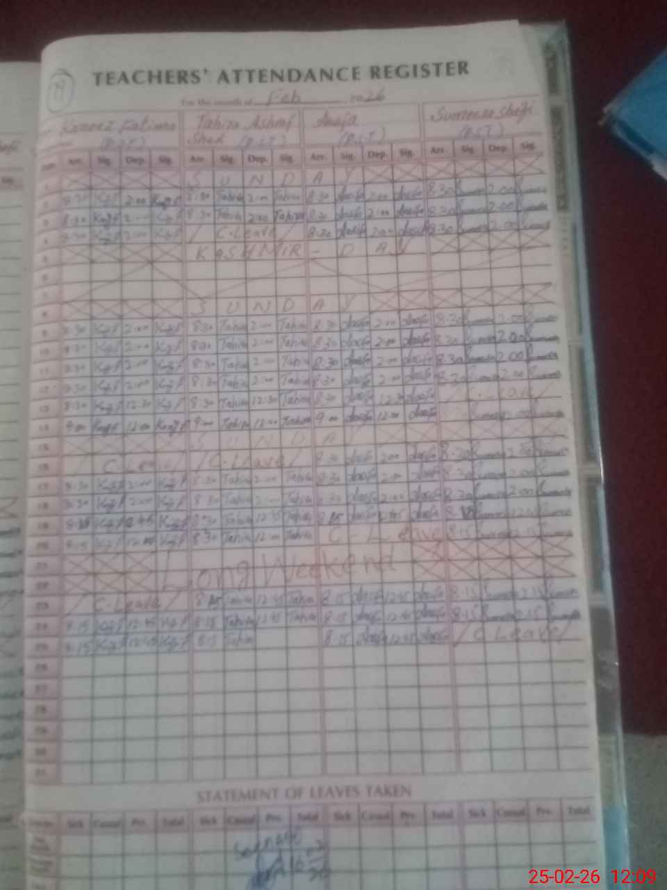 | 38**** | Su**** Sh**** | PST Science/Maths | Regular | 0 | 0 | 0 | 0 | 0 | 0 | 0 | 0 | 0 | Absent (Un-Authorized) |