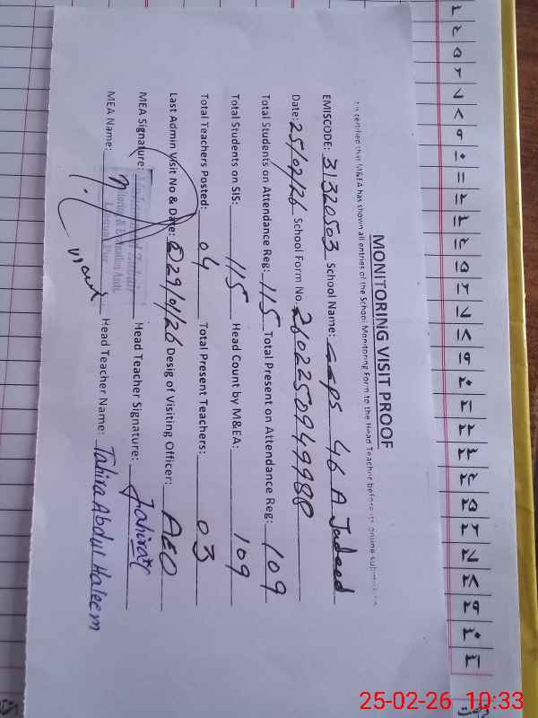 | EMIS Code: 31320503 | Name of School: GGPS CHAK NO.46/JADEED | |||
