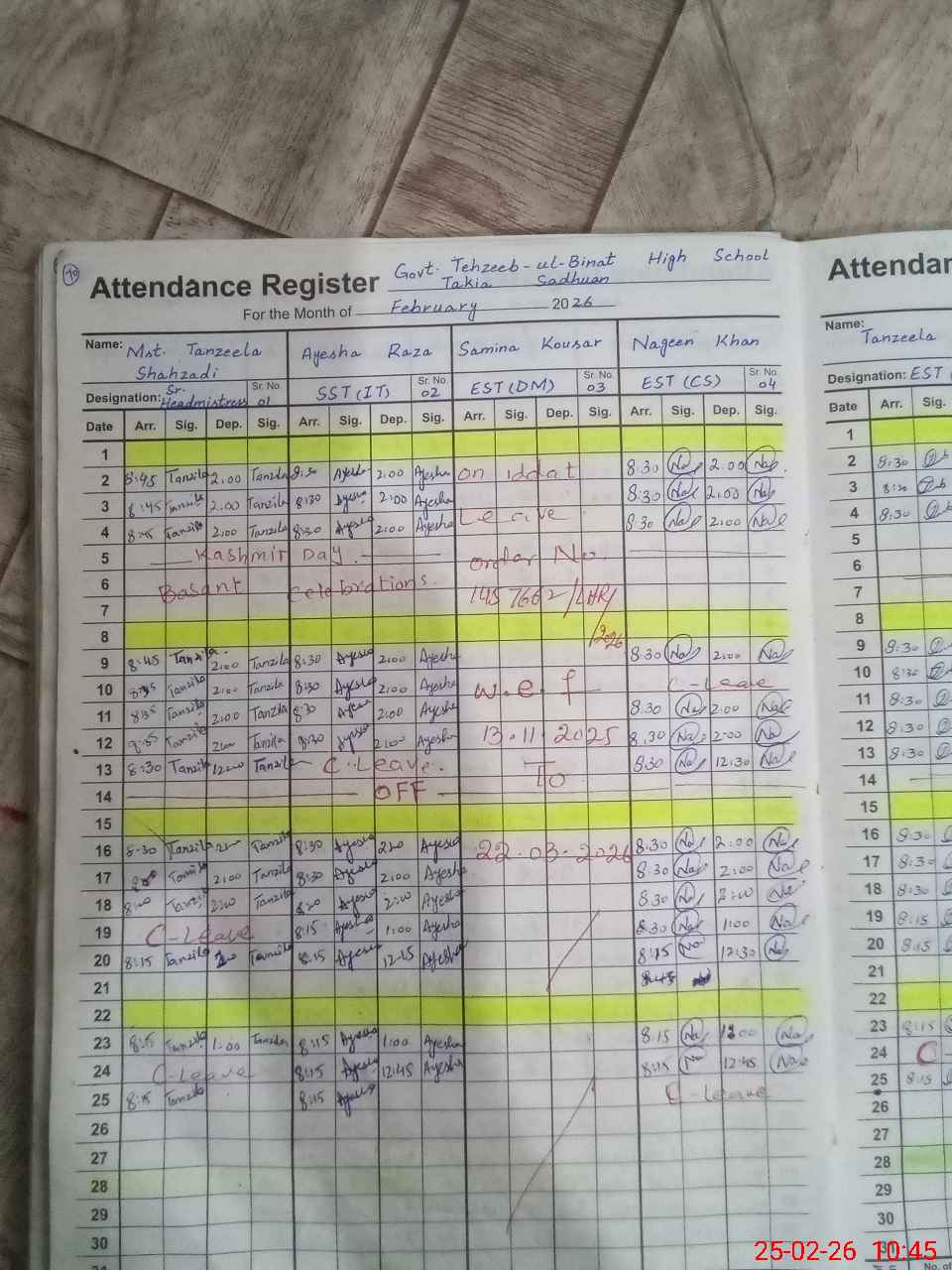 | 35**** | Us**** Ta**** | NAIB QASID | Regular | 0 | 0 | 31 | 0 | 0 | 0 | 0 | 0 | 0 | Absent (Un-Authorized) |
