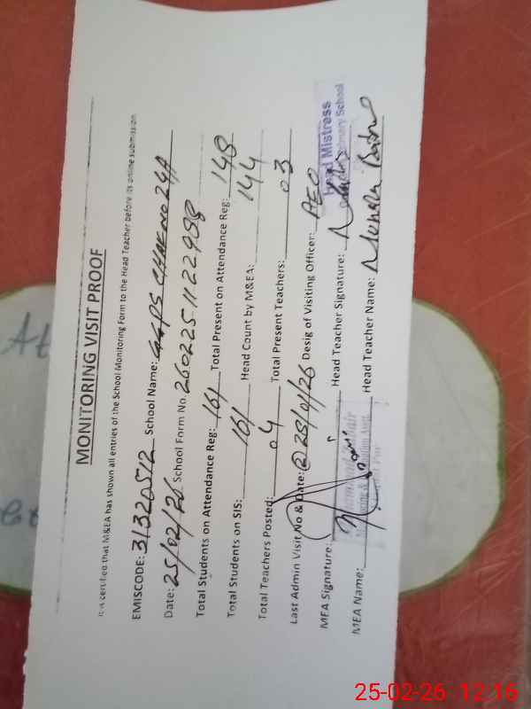 | Attendance Register | Head Teacher | MEA with School | Visit Proof |