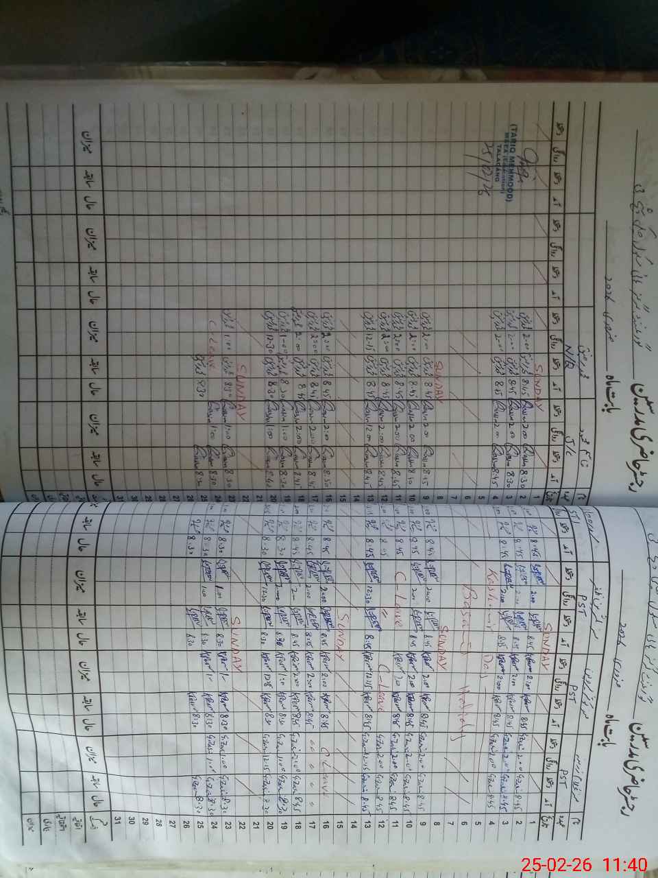 | CNIC | Full Name | Designation | R/C | Absence During Last Calender Month |