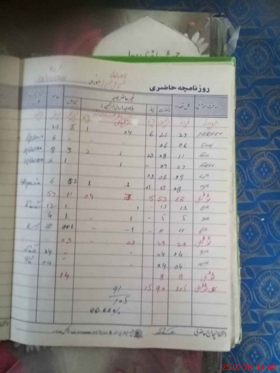 | CNIC | Full Name | Designation | R/C | Absence during last cal. month |