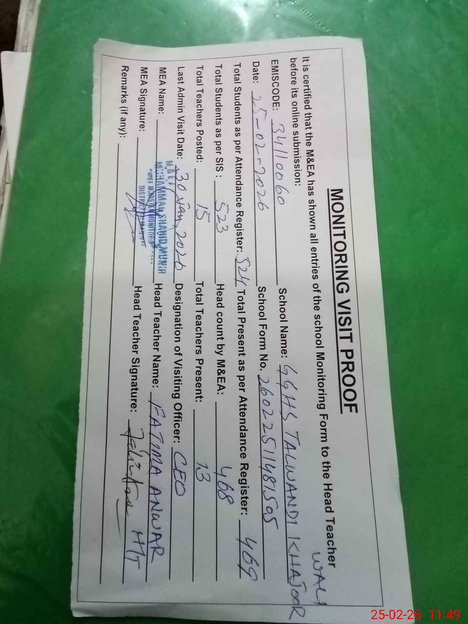 | EMIS Code: 34110060 | Name of School: GGHS TALWANDI KHAJOOR WALI | |||