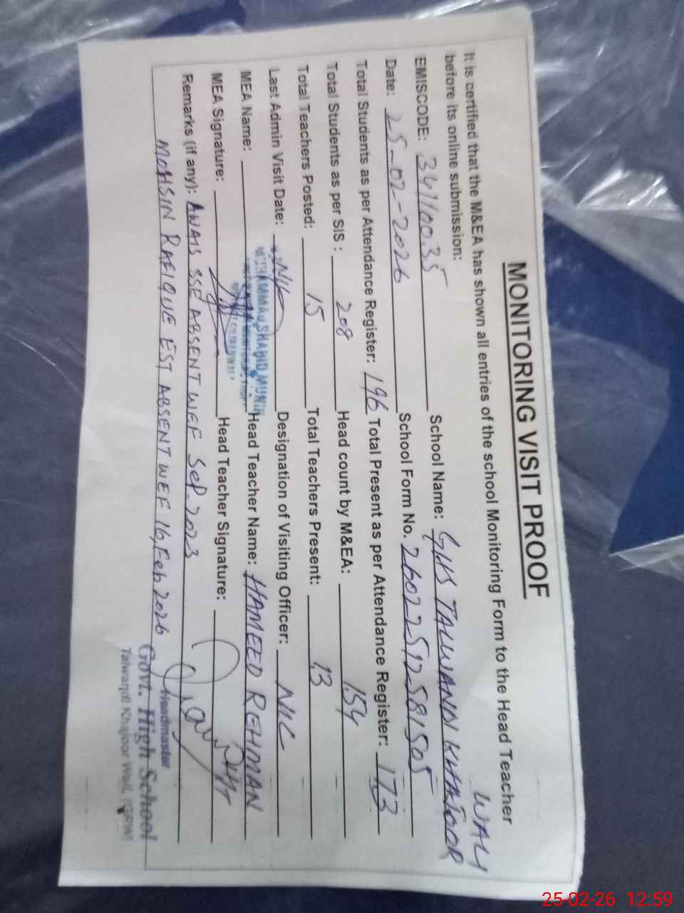 | EMIS Code: 34110035 | Name of School: GHS TALWANDI KHAJOOR WALI | |||