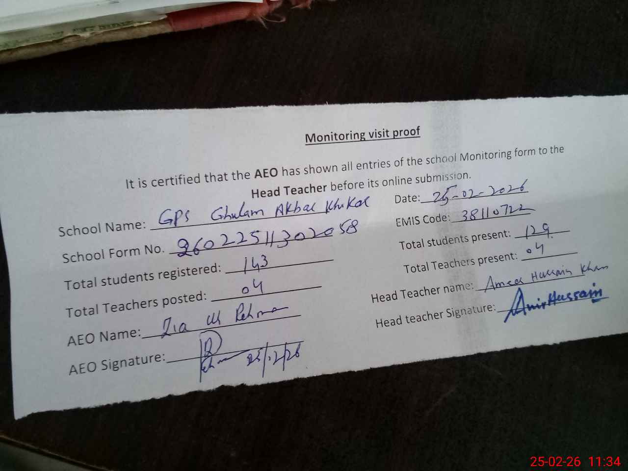 | EMIS Code: 38110722 | Name of School: GPS GHULAM AKBER KHOKHAR | |||