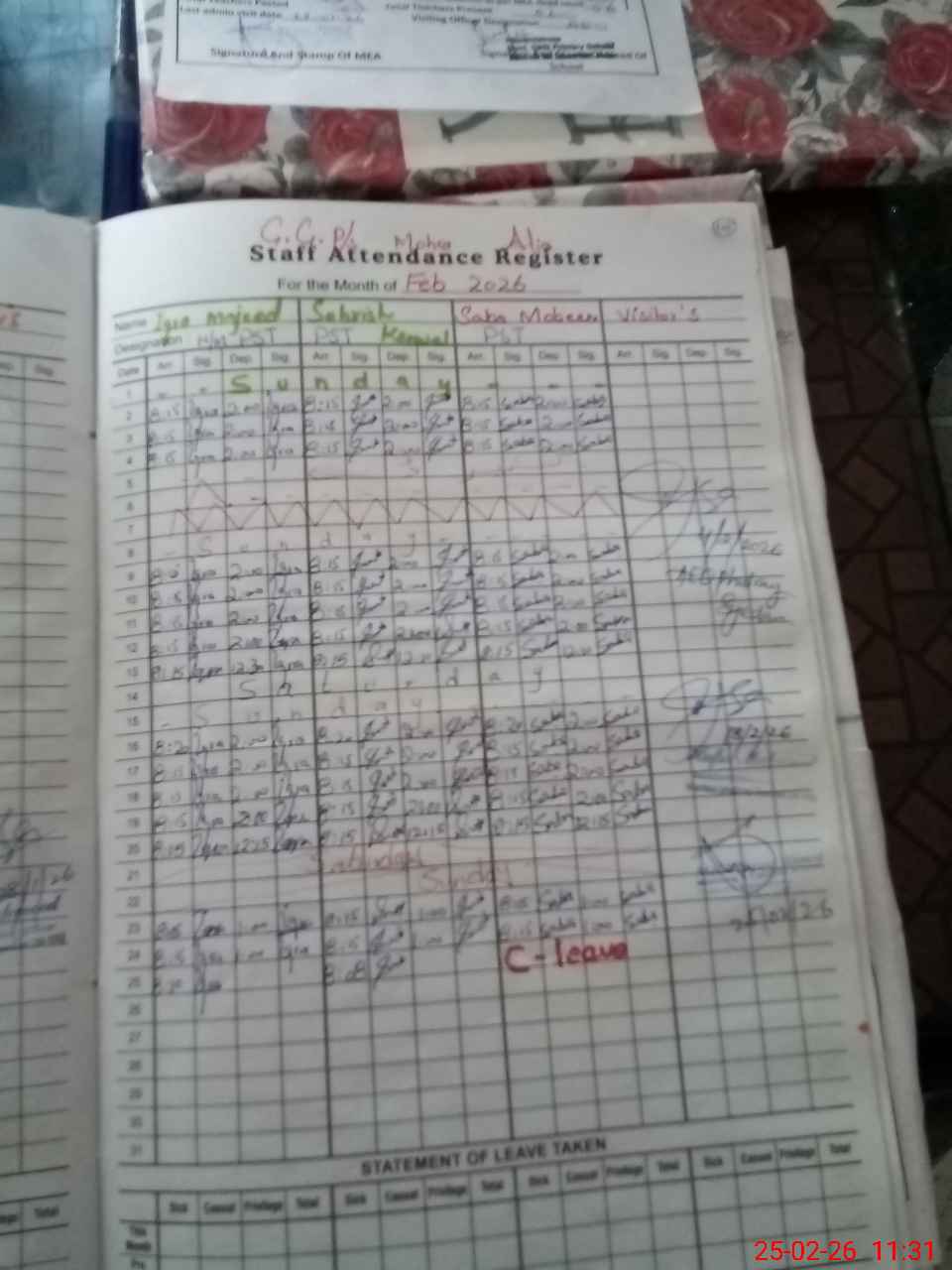 | Attendance Register | Head Teacher | MEA with School | Visit Proof |
