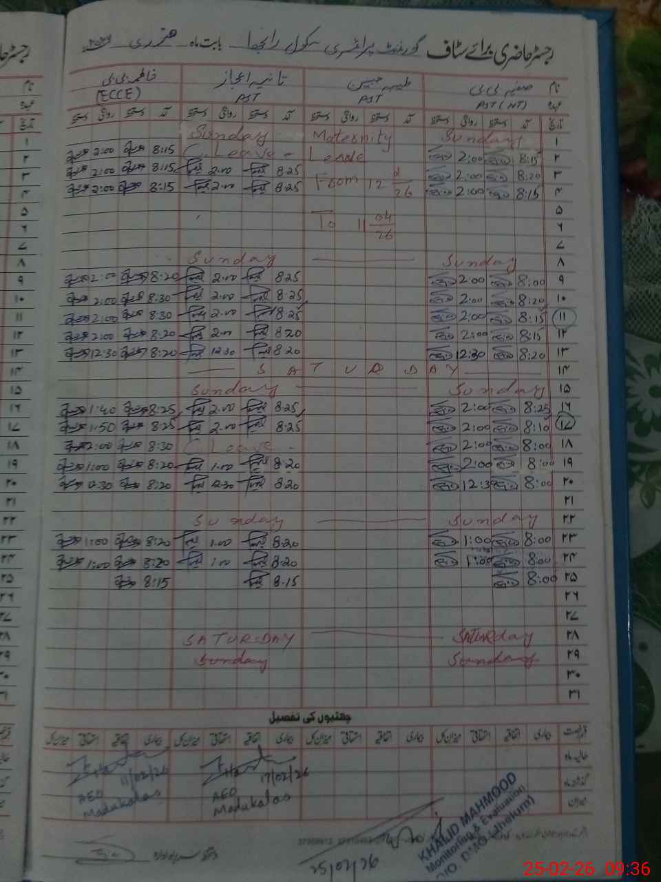 | Attendance Register | Head Teacher | MEA with School | Visit Proof |