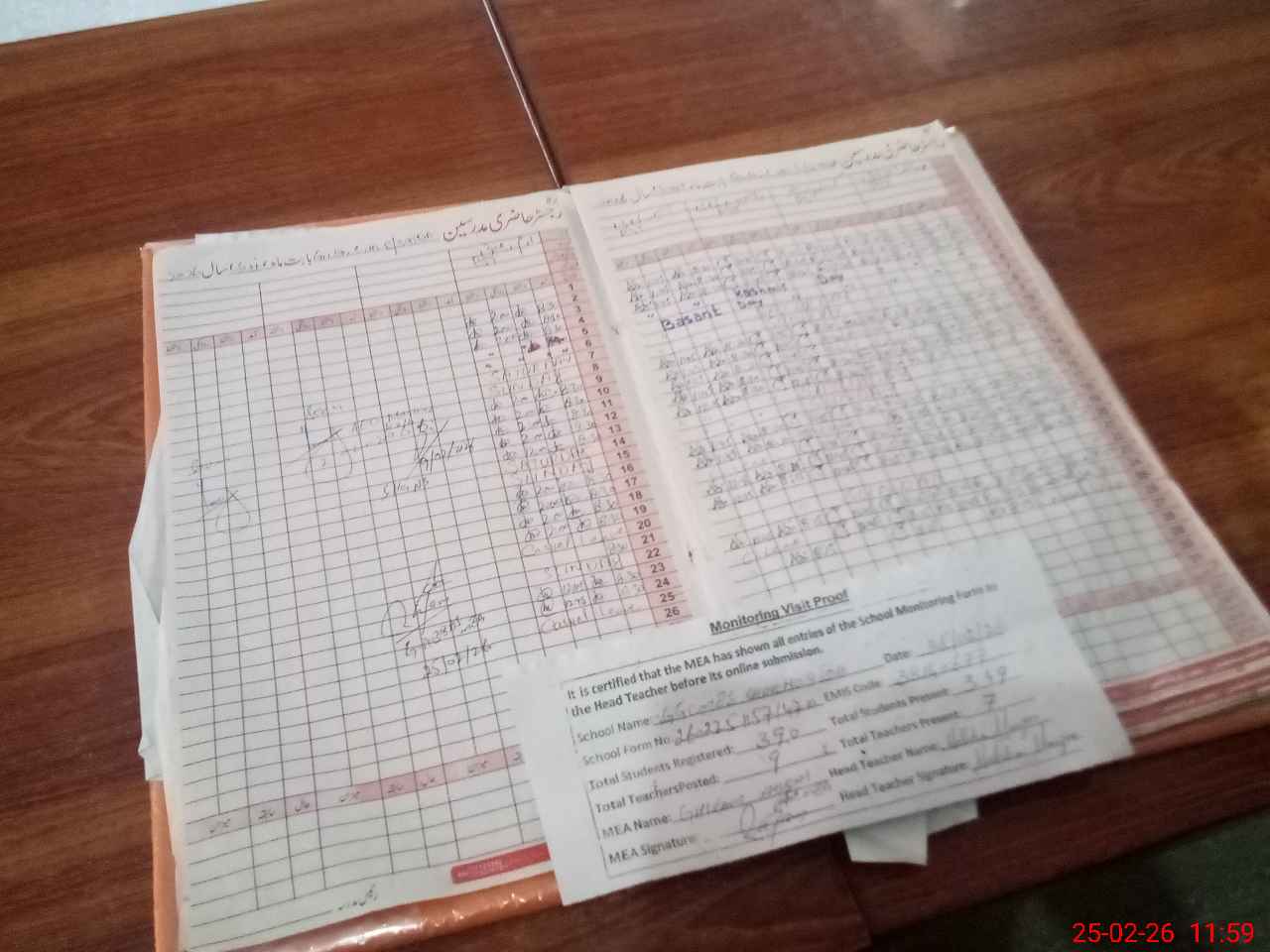 | Attendance Register | Head Teacher | MEA with School | Visit Proof |