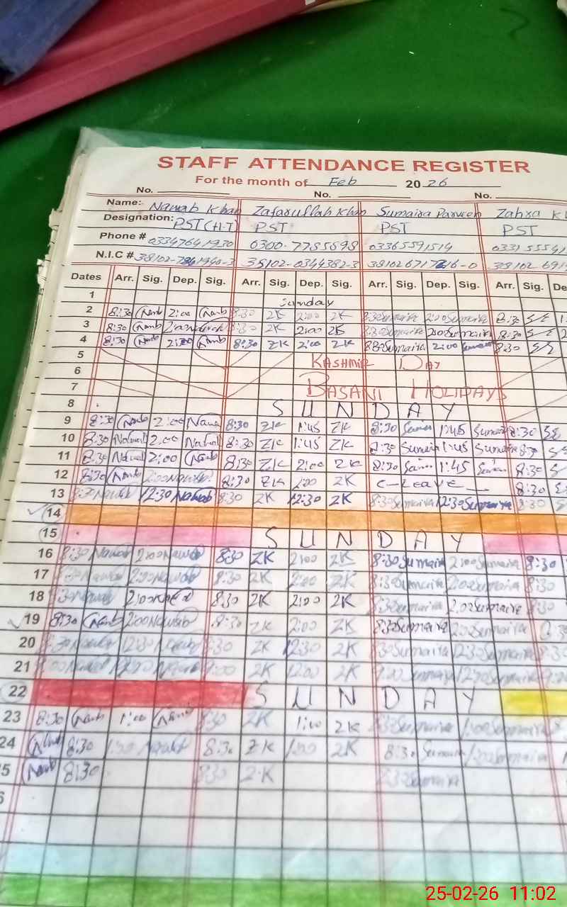 | Name: NA**** KH**** Designation: (School Headmaster's/Headmistress's) PST Phone/Cell Number: 03**** |