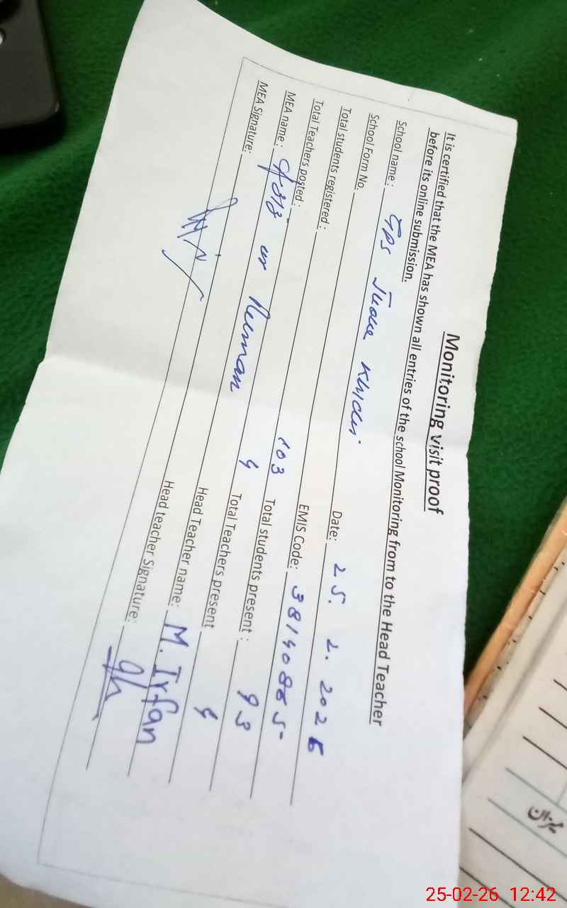| EMIS Code: 38140865 | Name of School: GPS JHOKE KHICHI | |||