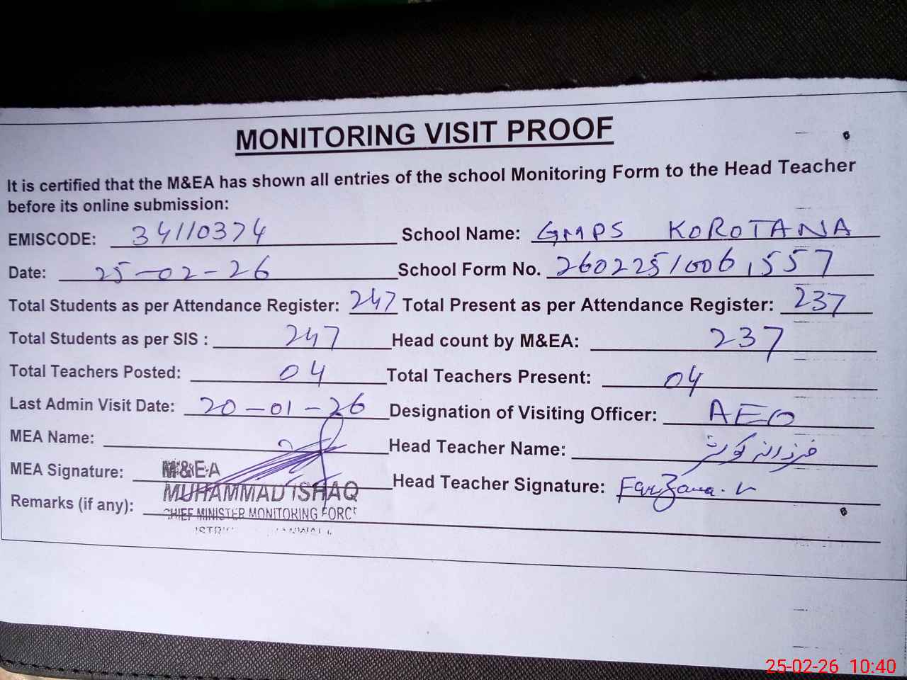 | EMIS Code: 34110374 | Name of School: GMPS KOROTANA | |||