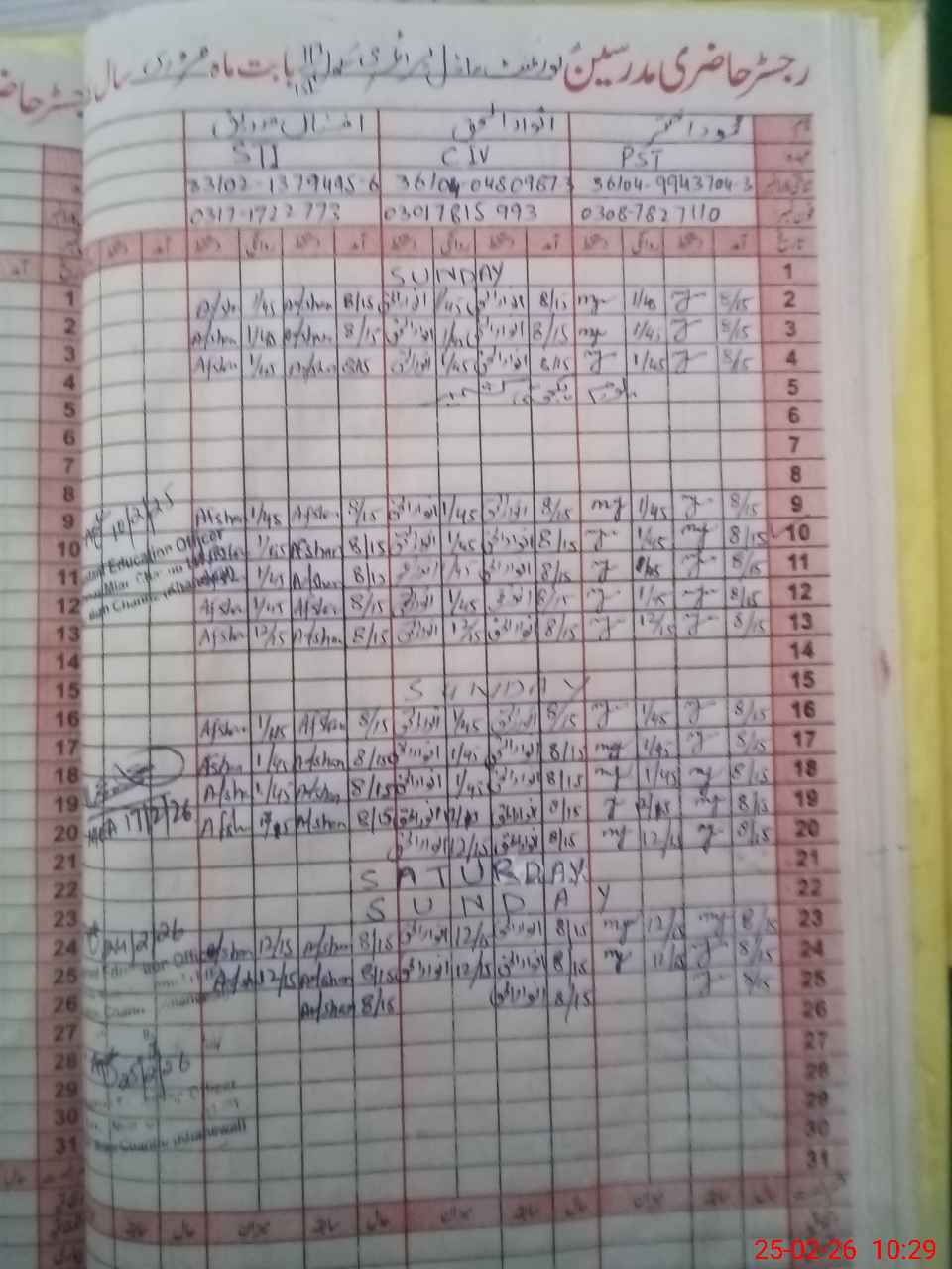 | Name: Me**** Ak**** Designation: (School Headmaster's/Headmistress's) PST Phone/Cell Number: 03**** |