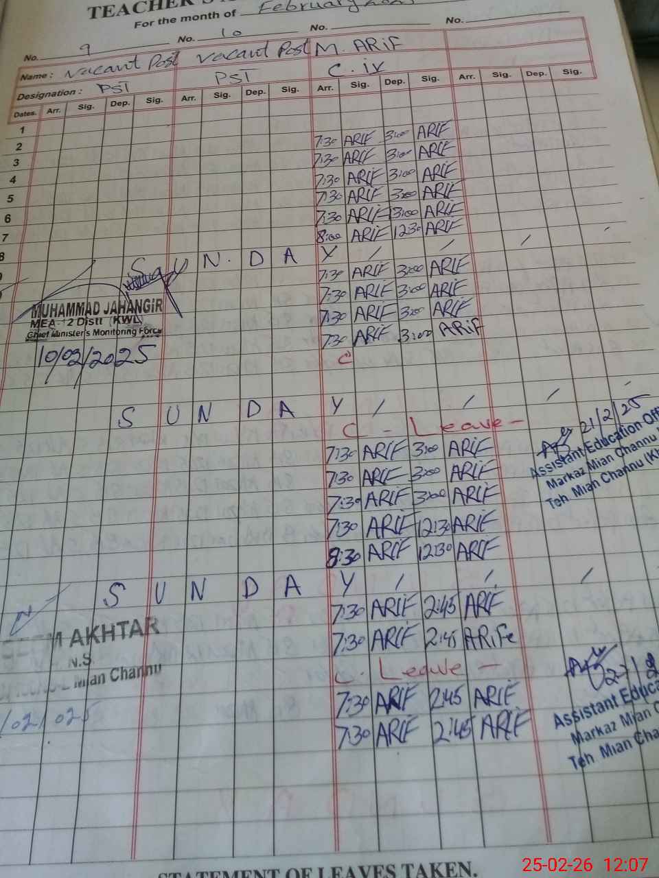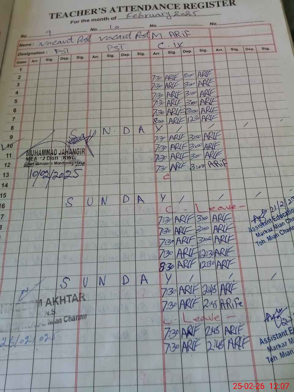 | Name: Aq**** Bi**** Designation: (School Headmaster's/Headmistress's) PST Phone/Cell Number: 03**** |