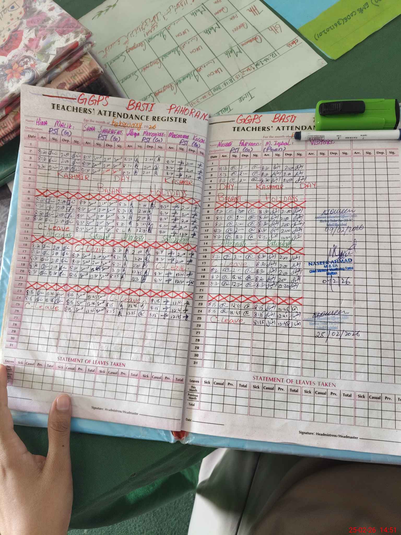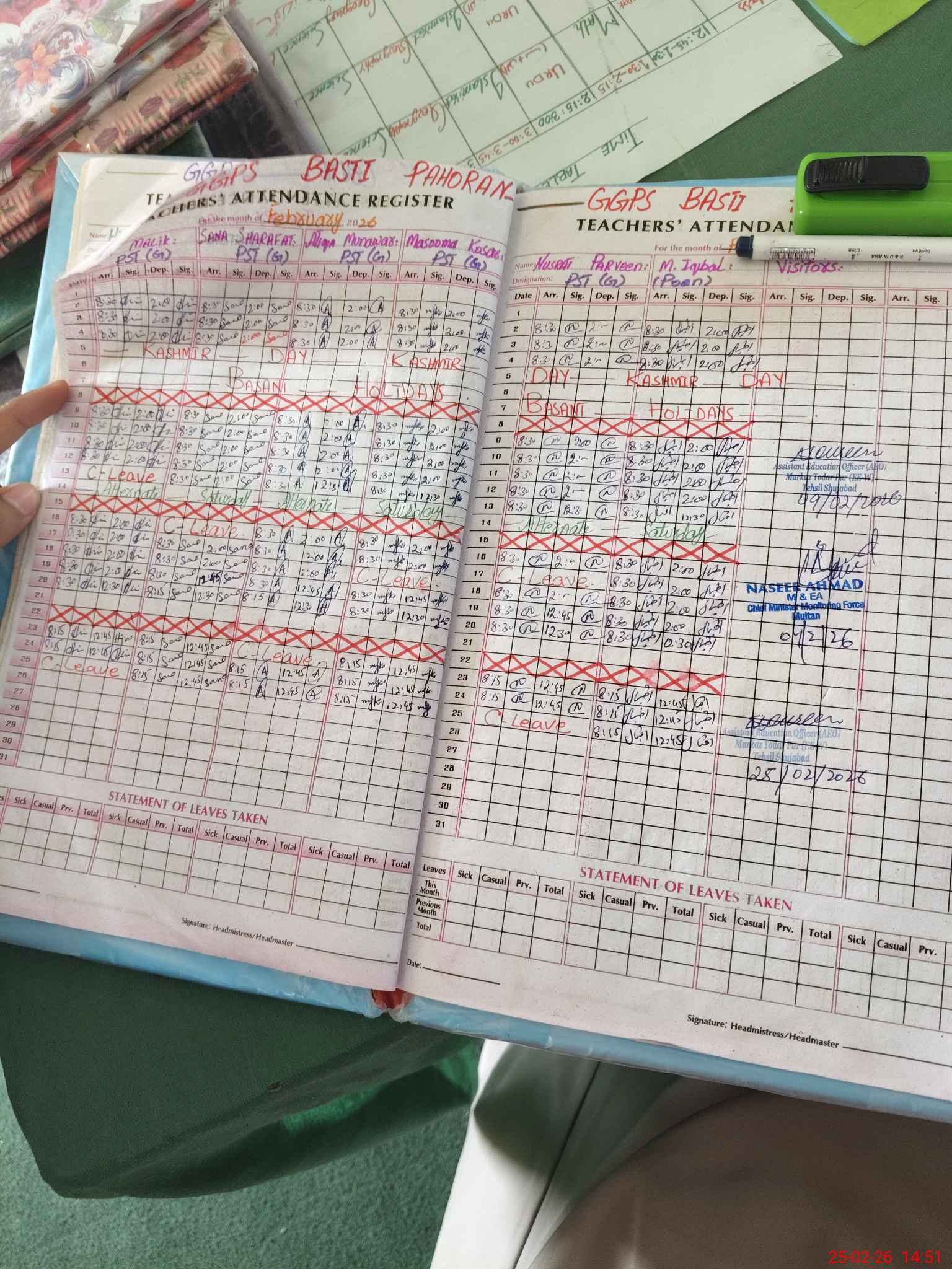 | Attendance Register | Head Teacher | MEA with School | Visit Proof |