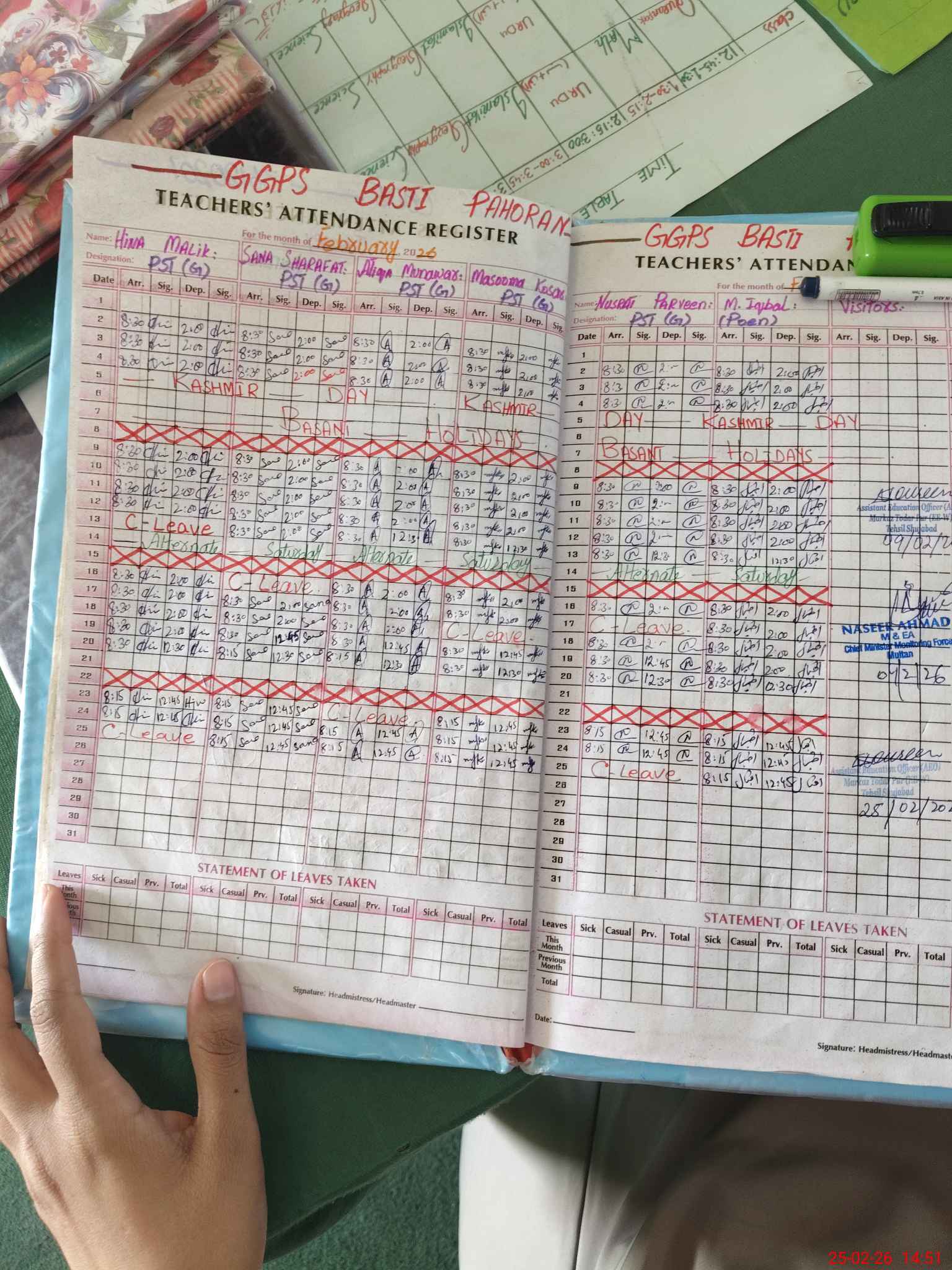 | Name: Hi**** Ma**** Designation: (School Headmaster's/Headmistress's) HEADMISTRESS Phone/Cell Number: 03**** |