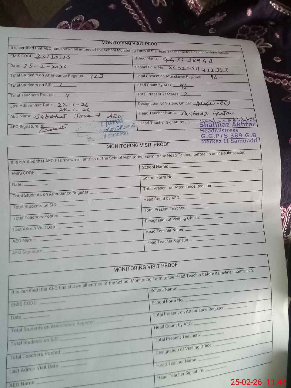 | EMIS Code: 33130225 | Name of School: GGPS CHAK 389 GB SAMUNDRI | |||